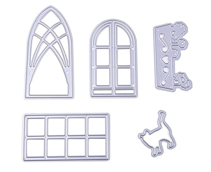 Taloyer Set Of 5pcs Door And Window Metal Cutting Dies Creative Stencil Template Moulds For Diy Scrapbook Album Paper Card Making Craft
